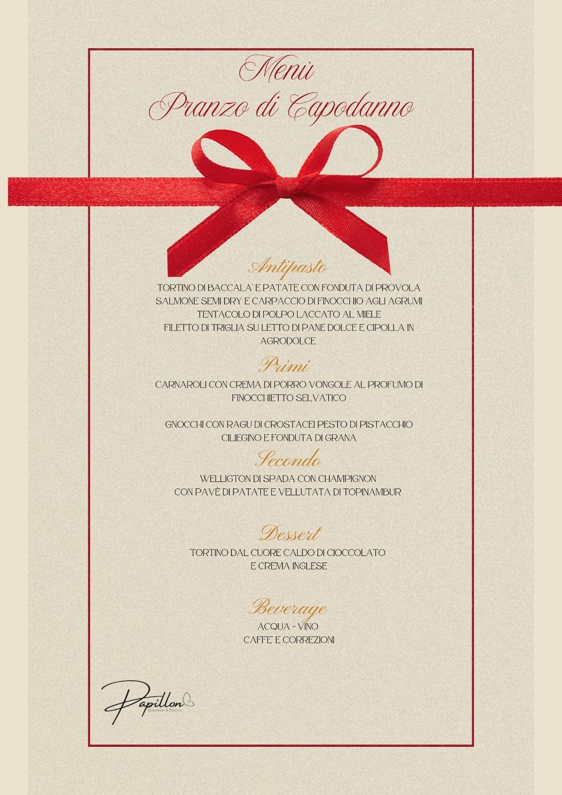 ( crema di parmigiano, funghi porcini, all’uscita: speck, burrata pugliese, misticanza)